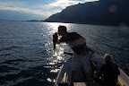Søndag gikk turen videre i regn over valdresflya til strynefjellet og Geiranger, via ørnevegen og ut til Ålesund hvor vi overnattet på et herberge. Regnet hadde stoppet og dagen etter var det flott sykkelvær og turen gikk videre til Molde, Atlanterhavsveien til Kristiansund. Herfra kjørte vi inn på E39 og vendte nesa mot Trondheim hvor vi fikk hadde overnatting hos de svært så gjestfrie kusinene til Klaus med familie. Neste dag gikk turen via Selbu - hvor vi besøkte hytta til Lise (den ene kusinen til Klaus) - mot Riksvei 17; Kystriksveien. Rv17 er en super motorsykkelvei med flotte svingete veier, lite trafikk når fellesferien er over og fine avbrekk med 3 ferjeturer mellom Steinkjer og Sandnessjøen. Vi kjørte til Brønnøysund hvor vi overnattet på Corner Motell i sentrum. Morgenen etter kjørte vi ut til Torghatten hvor vi måtte opp og titte på hølet i fjellet. Videre bare det mot Hamnes ved Sandnessjøen hvor Even og Evy hadde ankommet noen dager tidligere. Siden været var så flott da vi ankom bar det nesten rett ut i Vefsn-fjorden for å prøve fiskelykken.